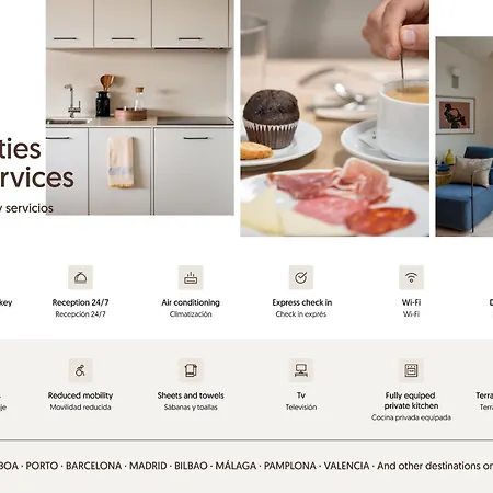 Apartahotel Libere Vitoria hotel offers rooms with a mini-kitchen complete with air conditioning. Bathrooms with a separate toilet and a shower, also include hairdryers and bath sheets.